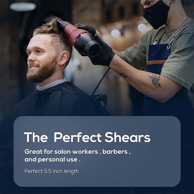 - โญ ACTIVE COLLABORATION WITH BARBERS: By collaborating with barbers & hairstylists, we've developed innovative designs and material selections focused on precision, sharpness, cutting efficiency, and minimizing hand & wrist strain in users. We are present at major beauty shows across America & Europe (UK) and gather valuable feedback from professionals that fuels our commitment to creating the most effective & user-friendly hair shears.