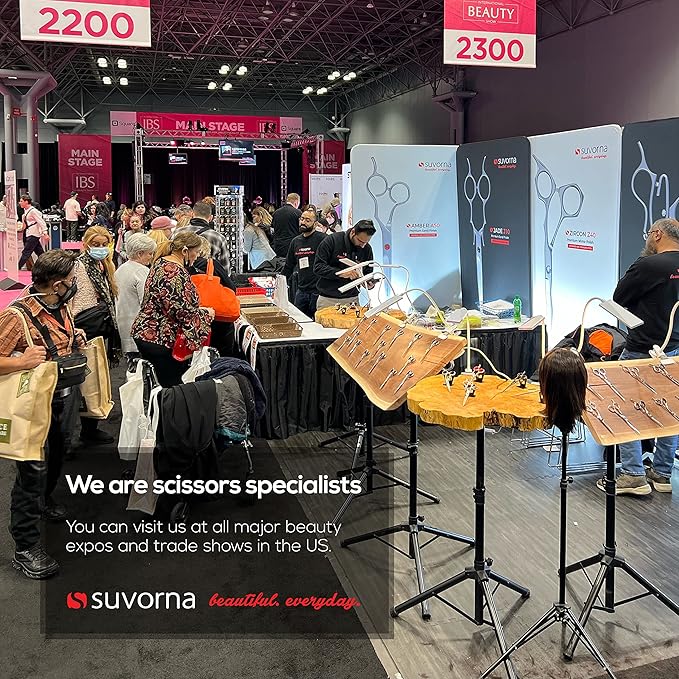 - ๐ฉ๐ปโ๐ผ AMERICAN FEMALE-OWNED BRAND: Suvorna is an American female-owned brand. Unlike other brands sourcing from China, each pair is hand-finished in our manufacturing units. Skilled artisans mold the finest quality J2 420 stainless steel into a sleek, ergonomic design. Each hair scissor is then hand-polished for a touch of luxury, Every pair undergoes strenuous quality assurance tests to give the confidence to offer a lifetime warranty against any manufacturing defects.