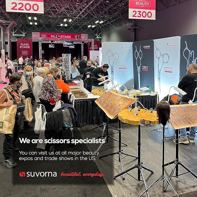 - ๐ Japanese Professional Swivel Thumb Shears J2 420 Steel: Suvorna hair scissors professional are made with japanese stainless steel which retains the cutting edge for a long time. Every hair cutting scissors is blast sand finished by hand to beautiful matte steel and is fine-tuned to ensure the best performance. These japanese barber scissors and hair shears can last a lifetime with heat, corrosion, rust resistant, colorfast, precise, fast, and fine tijeras de peluqueria profesional.