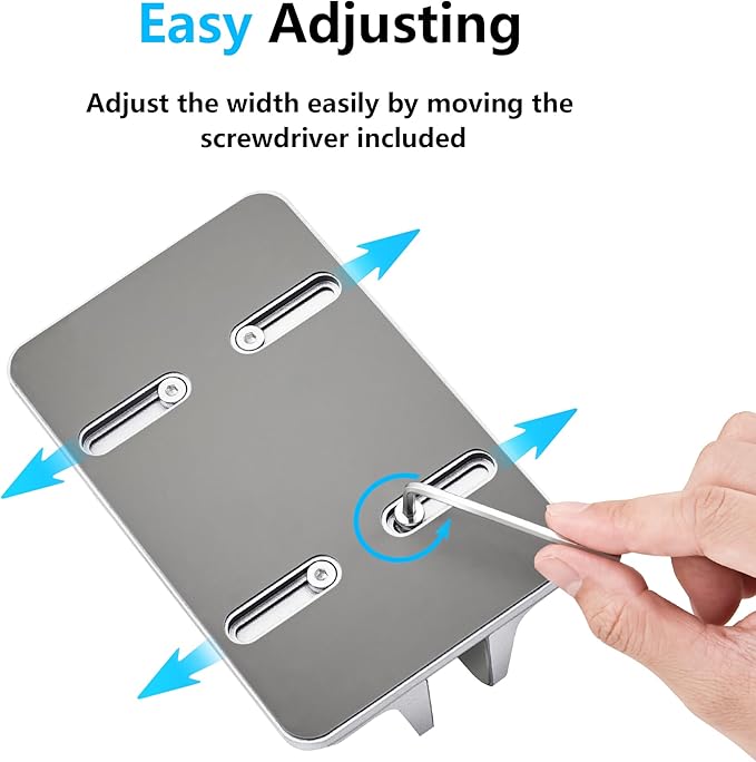 - Size Flexibility: The stand is adjustable to fit laptop widths with a thickness range of 0.55 inches to 2.55 inches. An included Allen key allows you to conveniently adjust the screw to achieve the correct size for your device.
