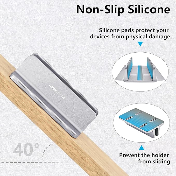 JARLINK Vertical Laptop Stand, Aluminum Laptop Holder Desktop Stand with Adjustable Dock Size (up to 17.3 inches) Compatible with All MacBook/Surface/Dell/Gaming Laptops (Silver)
