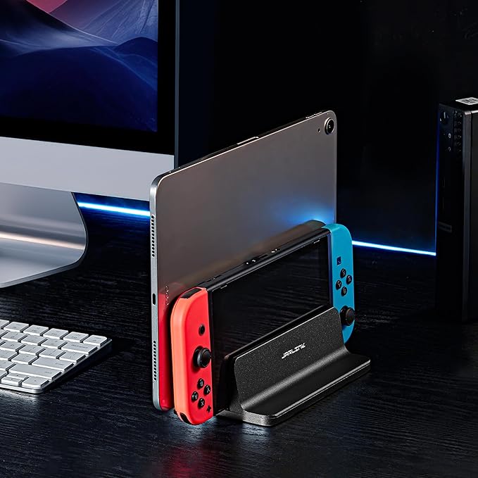 - Efficient Space Utilization: This vertical stand cradles your monitor, keeping your laptop secure and away from any spills. It helps create a neat and organized workspace by maximizing your desk area.