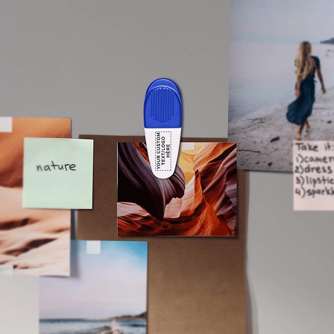 10 Magnetic Memo Holders Set - Customizable Text, Logo - Large Clip, Plastic - White Blue