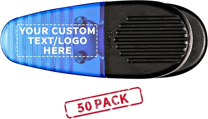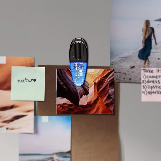 50 Magnetic Memo Holders Set - Customizable Text, Logo - Large Clip, Plastic - TBlue
