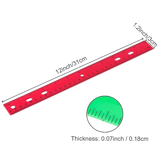 - WITH HOLE DESIGN - The 12 inch plastic ruler with centimeters and inches. Each ruler has 6 holes for hanging and easy to store. They also fit for storaging in most pencil cases! And you can also use these flexible rulers for marking on rounded art objects.
