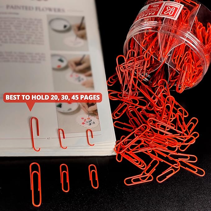 - ASSORTED SIZES - 450 pcs Red Paper clips Assorted Sizes includes 100 Jumbo Paper Clips of 2”, 150 Paper Clips Medium Size of 1.3” and 200 small paper clips of 1”