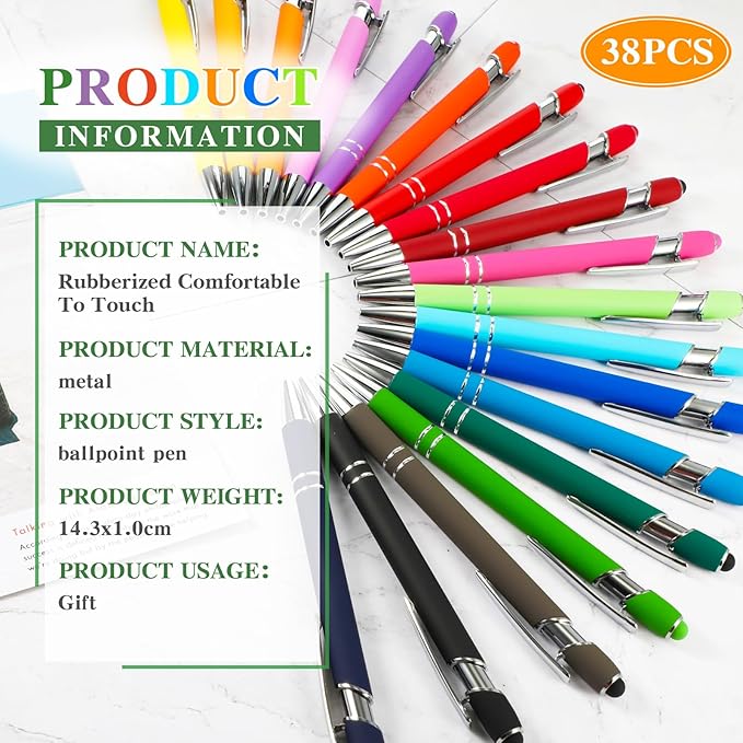 Zonon 38 Pieces Rubberized Ballpoint Pen with Stylus Tip Stylish Metal Pen Capacitive Styli with Soft Rubberized Grip, Black Ink for Most Devices(Assorted Colors)