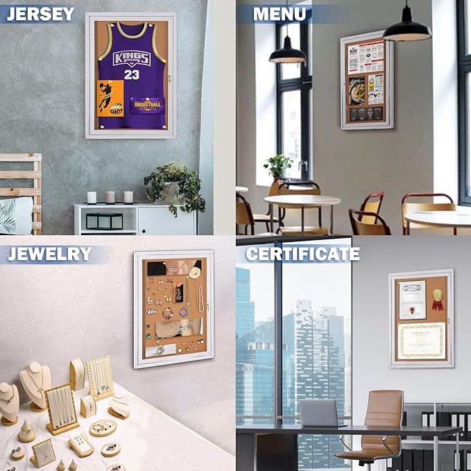 - ๐งOUTDOOR USE โThe weather-resistant cabinet construction features an aluminum frame with a smooth surface and full-length piano hinges that add strength and durability to the door frame. Drain holes on the bottom and a sealed backing mean you can mount the board outdoors.