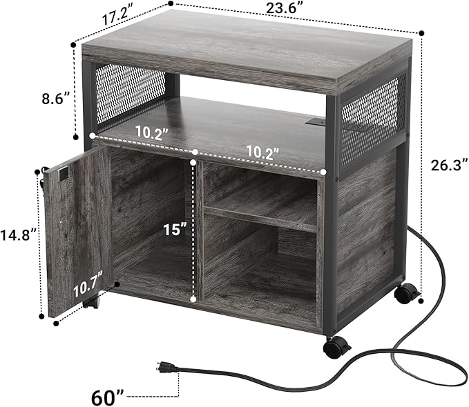- ๐ใMultifunctionalใ This rolling printer stand featured with a lockable door, which allow convenient file access and add security that keep your business private. The two open shelves is great to store and display for binders, folders, books, furnishing articles or decor. You can also adjust the shelves height as your different needs.