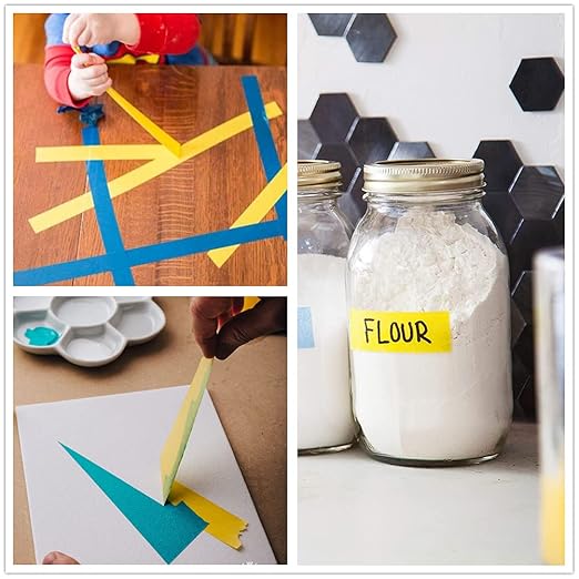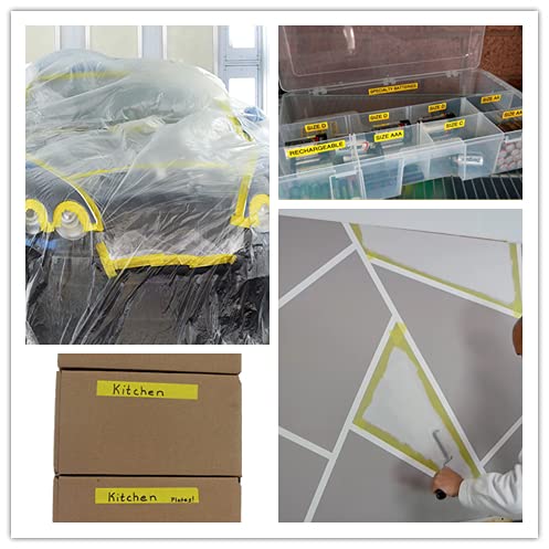 - Wide Application : Yellow masking tape ideal for home painting , automobile painting, watercolor painting and acrylic painting.Also can be used as labeling tape for color coding on moving boxes, storage containers, cabinets, cables, documents. Use it in home decoration, party decoration, wall art, greeting cards, scrapbooking, automotive repair and much more
