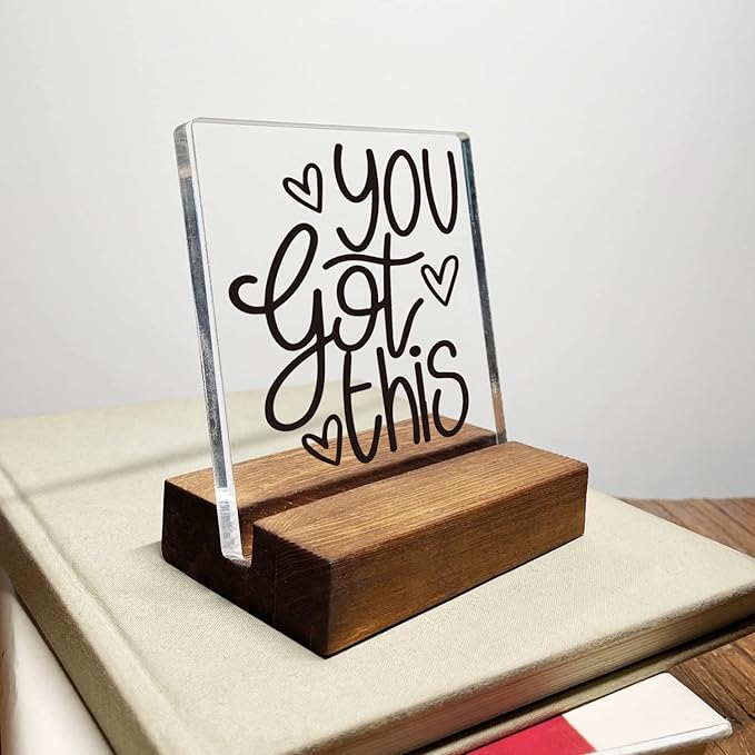 You Got This Inspirational Quotes Desk Decor Gifts For Women Best Friend Encouragement Office Inspiration Positive Plaque Acrylic With Wooden Stand Sign for Cowoker Friend Women Gift
