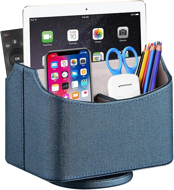 - Rotatable Remote Control Holder: Improved swivel base for smoother 360 rotating and more durable, allows easy access to items from any direction. Concise and practical desk caddy for bedroom accessories organize and stuff storage, add a living room decor aesthetic for office & home.