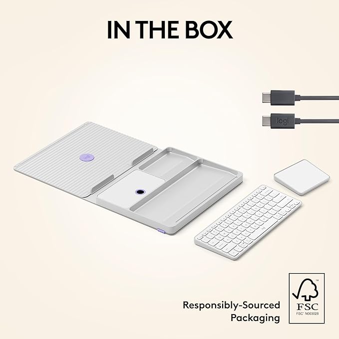 Logitech Casa Pop-Up Desk Work From Home Kit with Laptop Stand, Wireless Keyboard & Touchpad, Bluetooth, USB C Charging, for Laptop/MacBook(10” to 17”), Windows,macOS,ChromeOS - Nordic Calm,Tan/Purple