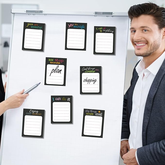 - Blackboard Themed Design: these cute sticky notes are designed with a blackboard look and chalked encouragement text, modern and stylish, each motivational sticky note is printed with inspirational words such as good things are coming, you are enough, enjoy every moment, laugh more and worry less, don't stop believing, etc.; It can encourage us to maintain a positive and optimistic attitude towards life, and the vivid design allows you to use it with a happy feeling
