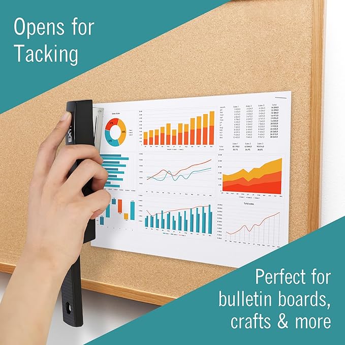- Office staplers - opens 180 degrees - tack papers to bulletin boards with ease, just unlatch the metal stapler and you're ready.