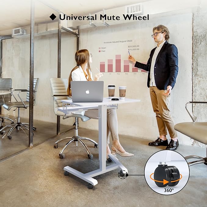 - ADJUSTABLE HEIGHT DESIGN: The mobile standing desk promotes a healthier workstyle by allowing quick transitions between sitting and standing. The gas spring lift smoothly adjusts the height from 28.3in to 44in, supporting better posture and reducing neck and back strain during long working hours. This portable desk improves daily comfort and productivity across different environments.