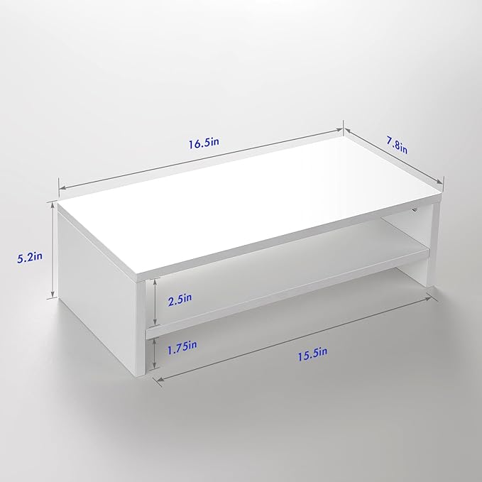 BEYGORM White Monitor Stand Riser for Desk,2 Tiers Wood Desk Shelf Computer Screen Stand with Storage for Desktop Laptop/Screen/TV/PC/Printer,Multifunctional Desktop Organizer 16.5 x 7.8 x 5.2 inch