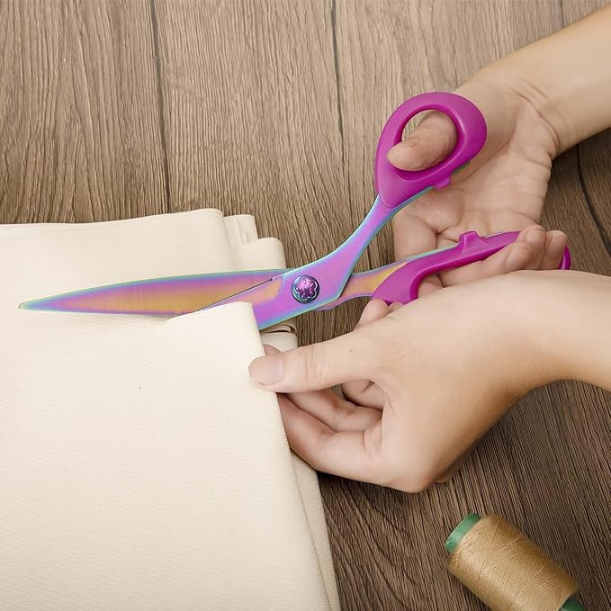 - Heavy Duty All-Purpose Scissors: Ideal for sewing, tailoring, quilting, and dressmaking. Perfect for cutting multiple layers of fabric, clothes, denim, jeans, leather, burlap, canvas, upholstery, vinyl, patterns, alterations, yarn, thread, ribbon, photos for scrapbooking, paper, cardboard, wrapping paper, and other arts & crafts for home or office use