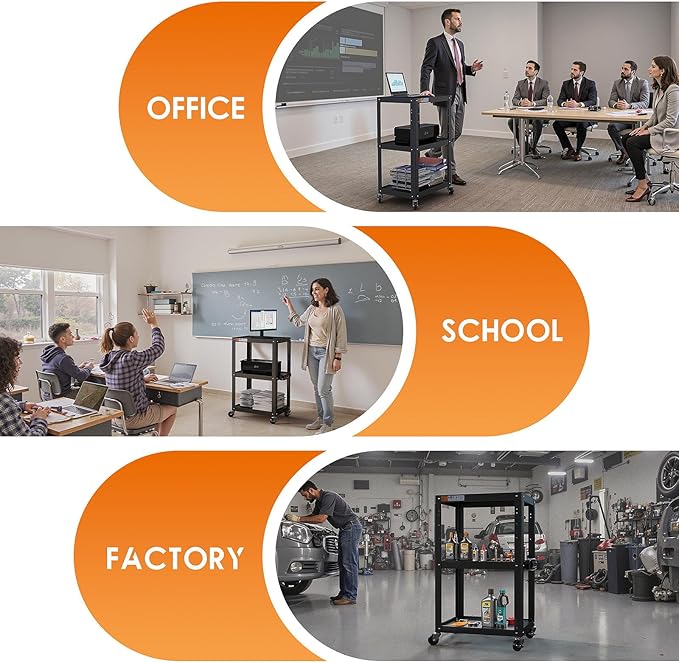 - METAL PROJECTOR CART: Our rolling utility cart is made of 100% steel, and contains zero plastic materials. Our heavy-duty rolling metal projector cart for teachers is designed to support common equipment like laptops, monitor, and printer.