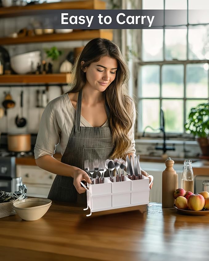 - ππ§πππππ§π’π£ π£π₯π’π§πππ§ππ’π‘ β Equipped with a non-slip base, this white silverware organizer ensures stable placement while protecting your surfaces from scratches. Perfect for keeping your table pristine while providing easy access to your utensils.