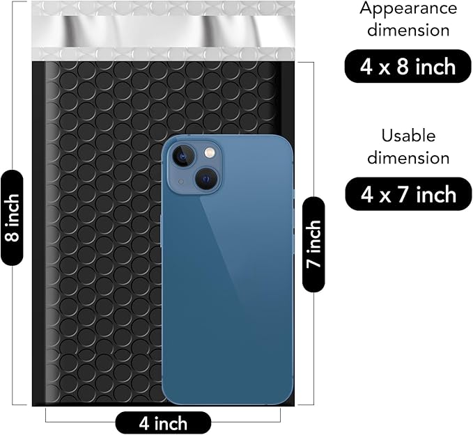 - Perfect Size Black 000 Bubble Mailers: The small bubble mailers outer size is 4x8 inch, while the inner size is 4x7 inch. It is very suitable to transport for jewelry, makeup, cards, phone case, Lips, photos,handcraft and more.