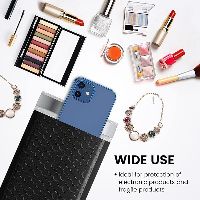 - Perfect Size Black Bubble Mailers: The small bubble mailers outer size is 4x8 inch, while the inner size is 4x7 inch. It is very suitable to transport for jewelry, makeup, cards, phone case, lips, photos,handcraft and more.