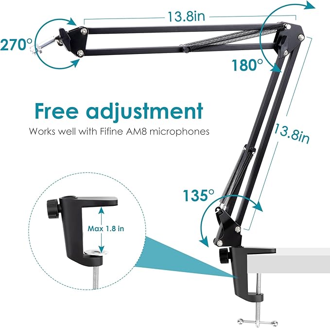 - 【Optimized for Fifine AM8】Stable & Secure Fit – Specifically designed Compatible with Fifine AM8 dynamic microphone (mic not included), ensuring perfect balance and zero wobble during streaming or recording.