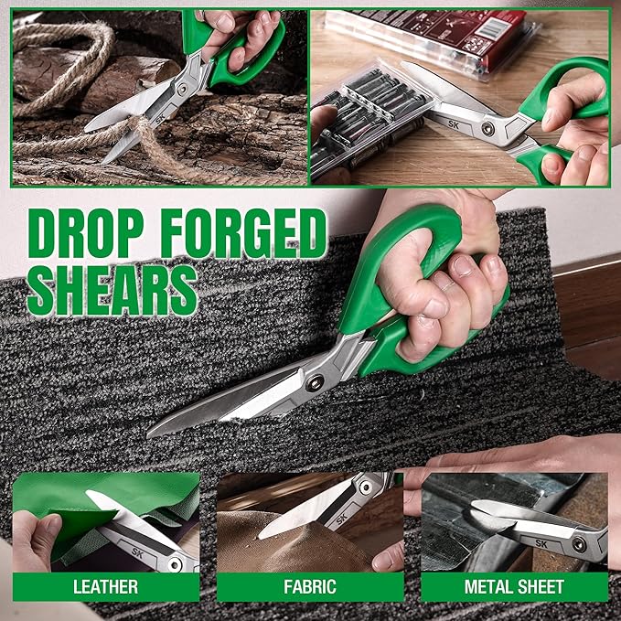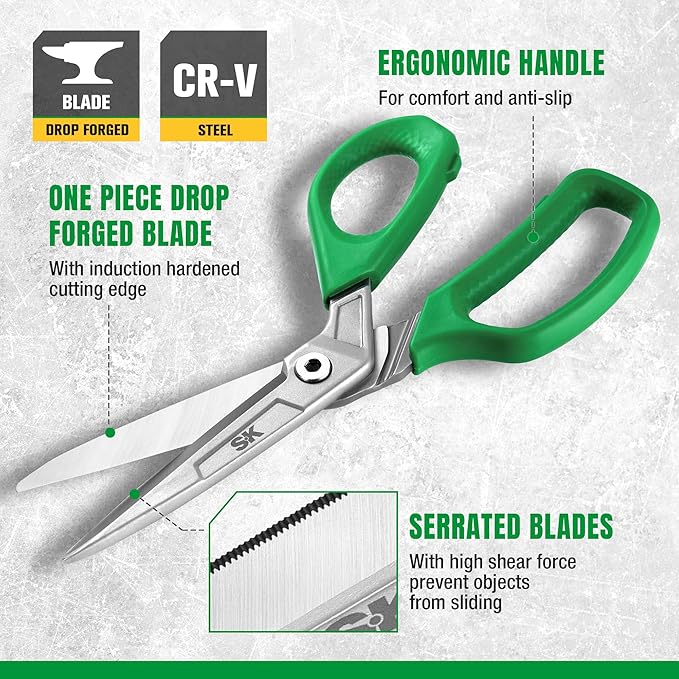 SK 10" Heavy Duty Scissors, All Purpose Shears, Premium CR-V Steel Construction, One Piece Drop Forged Blades, Ergonomic Handle for Comfortable Grip