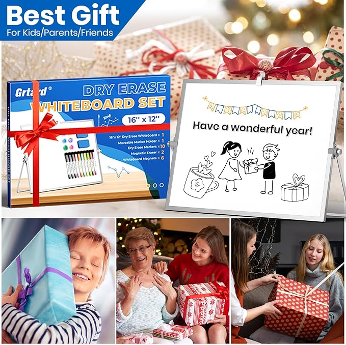 Grtard Dry Erase Magnetic White Board, 16''x12'' Double-Sided Desktop Whiteboard with Stand, Portable Small Whiteboard Set, Dry Erase Board for Drawing, ToDo, Office, Home, School