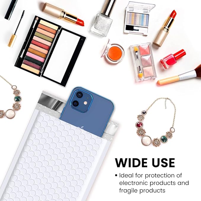 - Perfect Size White Bubble Mailers: The small bubble mailers outer size is 4x8 inch, while the inner size is 4x7 inch. It is very suitable to transport for jewelry, makeup, cards, phone case, lips, photos,handcraft and more.