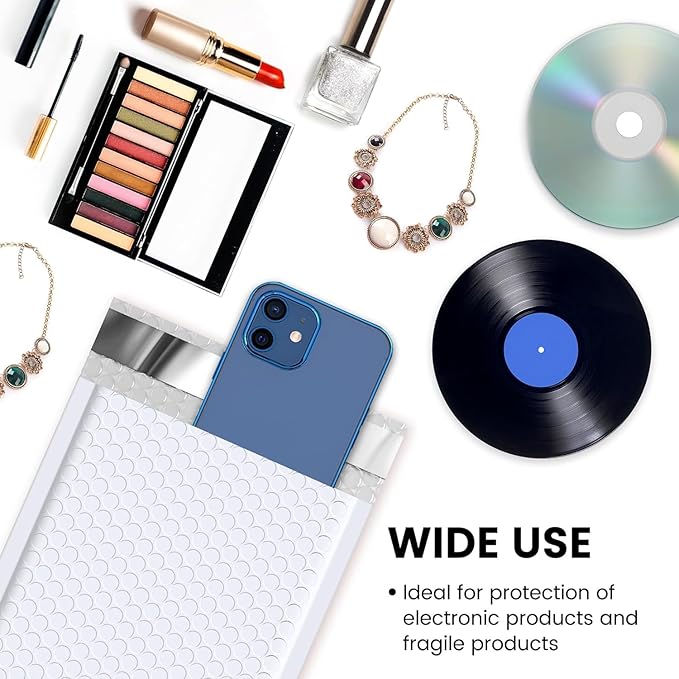 - Perfect Size White Bubble Mailer: The poly bubble mailers outer size is 6x10 inch, while the inner size is 6x9 inch. It is very suitable to transport for jewelry, makeup, cards, phone case, Lips, photos, handcraft and more.