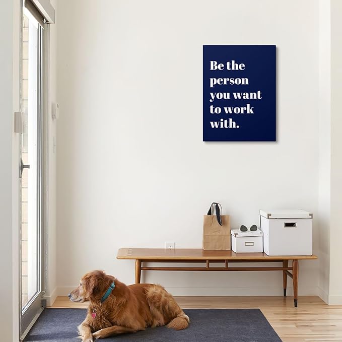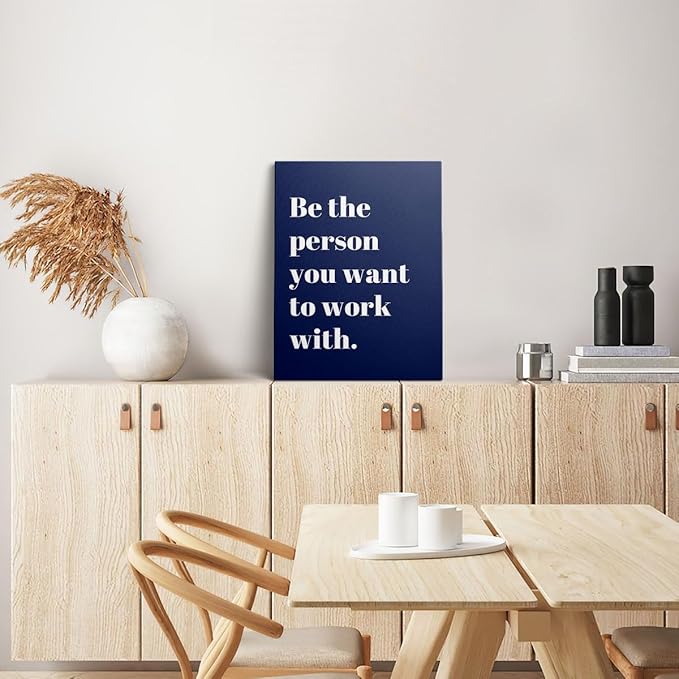 XWELLDAN Be The Person You Want to Work With Inspirational Quote Wall Art Canvas Prints,Team Work Motivational Quotes Wall Art Decor for Home Office Workplace, 11 x 14 Inch, Framed(Navy blue)