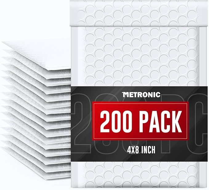 METRONIC 4x8" Bubble Mailer 200 Pack Waterproof White Small Bubble Mailers Usable Size 4x7" Self Seal Mailing Envelopes Bubble Padded for Small Business Mailing Jewelry Makeup Cards Envelope Mailers