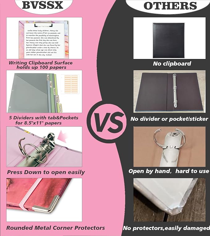 - 【Multiple Applications&After-sale】Three ring binder is ideal for keeping organized at home, school or work! such as collection of essays, photocard, recipe, wedding organizer, view, payroll, schedules, saving and reports.. It's a nice gift for your friends, children, teacher and nurse on Christmas,Thanksgiving, birthday. BVSSX is dedicated to providing excellent customer service. If you have any questions, please feel free to contact us.
