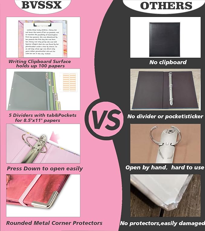 - 【Multiple Applications&After-sale】Three ring binder is ideal for keeping organized at home, school or work! such as collection of essays, photocard, recipe, wedding organizer, view, payroll, schedules, saving and reports.. It's a nice gift for your friends, children, teacher and nurse on Christmas,Thanksgiving, birthday. BVSSX is dedicated to providing excellent customer service. If you have any questions, please feel free to contact us.