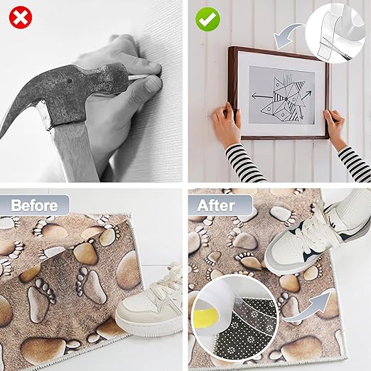 - ✅【Transparent TracelessTape】 Through new Nano Technology and adaptable material it holds on most surfaces.The double-sided transparent tape is easy to remove and will not damage your walls or surfaces with no residue or glue left. Please Note:We don't suggest using it on the flimsy wall (Paint wall, Powder wall),avoid causing the surface of the wall to fall off.
