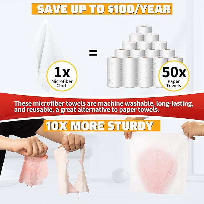 - STURDY & REUSABLE: These microfiber towels for cars are machine washable, long-lasting, and reusable, a great alternative to paper towels. The microfiber fabric construction provides extreme durability, which prevents towels from wrinkling, stretching, or shrinking after regular usage. The high-quality texture ensures 500 times Machine Wash Cycle under normal conditions. Our lint free cloths are ideal for any workshop that regularly deals with spills like water, grease, or grime.