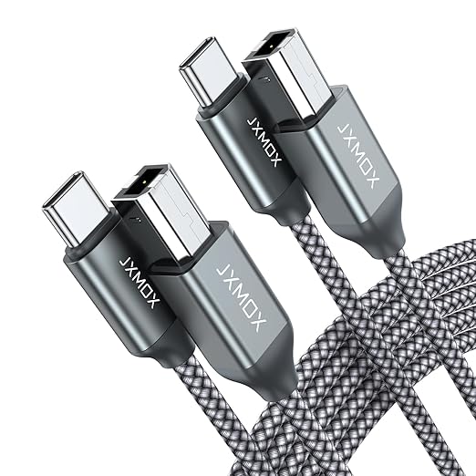 JXMOX USB B to USB C Printer Cable, (6.6ft 2-Pack) Nylon Braided USB B to C Cord, USB C MIDI Cable Compatible with MacBook Pro, HP, Epson, Canon, Brother, Yamaha Piano Keyboard, DAC, DJ Controller