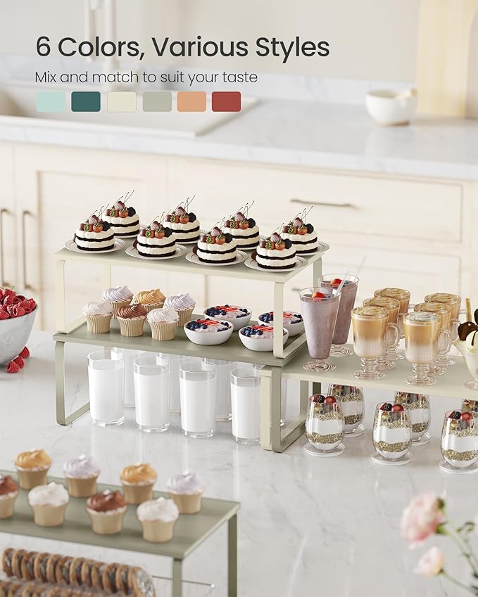 SONGMICS Cabinet Organizer Shelf, Set of 2 Kitchen Counter Shelves, Kitchen Storage, Spice Rack, Stackable, Expandable, Metal and Engineered Wood, Cappuccino Beige UKCS200K01