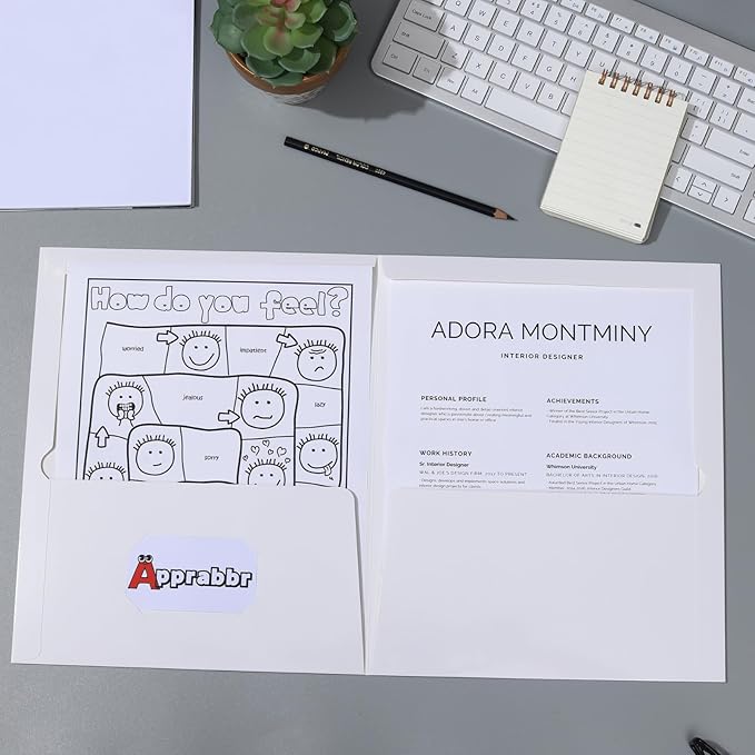 - 2 Pocket File Folder: The folder's white glossy finish offering a clean, professional appearance. Enhanced two deep pocket and a die-cut business card slot in left pocket for your convient use!