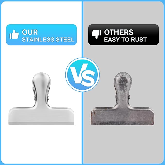 - PREMIUM MATERIAL: Our chip clips heavy duty are crafted from high-quality stainless steel with a matte finish that resists rust and corrosion, ensuring long-lasting performance and style.
