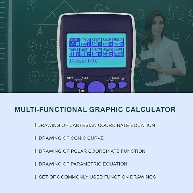 - Advanced Graphing Capabilities:Graphing calculator supports various graphing functions, including :1、Drawing of Cartesian Coordinate equation 2、Drawing of Conic Curve 3、Drawing of Polar Coordinate Function 4、Drawing of Parametric Equation 5、Set of 8 commonly used function drawings catering to the needs of professional users.Perfect for college students back to school supplies .