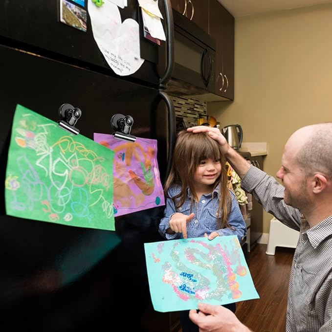 - Strong & Versatile Hold: These magnetic clips for refrigerator securely hold heavy card stock, photos, and artwork. Ideal as fridge magnets, magnet clips, or whiteboard magnets.