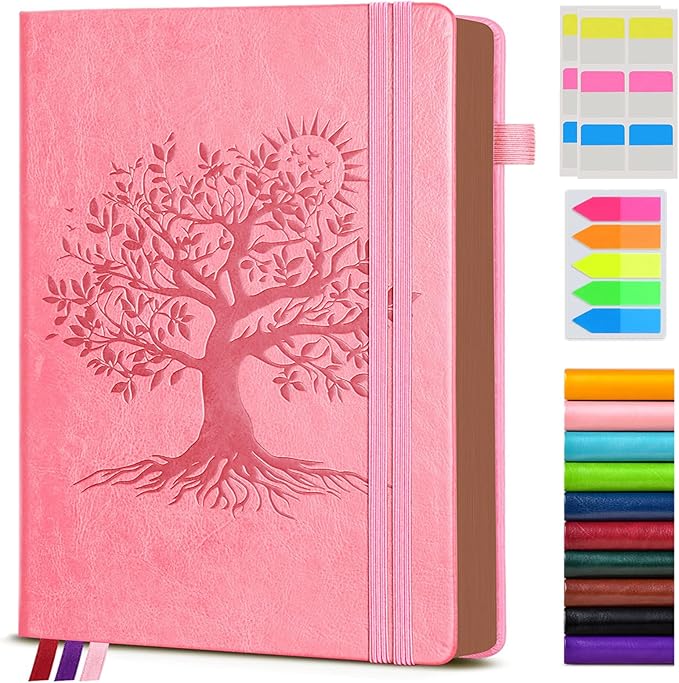 - 【BUILT-IN FEATURES FOR CONVENIENCE】This journal notebook comes with several useful features.The 1 built-in back pocket is ideal for storing loose papers or small items. The 1 elastic pen holder keeps your pen handy at all times.The 2 elastic closures ensure that the notebook stays securely closed.Additionally, the 3 colored ribbon bookmarks help you easily find your place.And the 3 free sticky tabs are great for marking important sections.