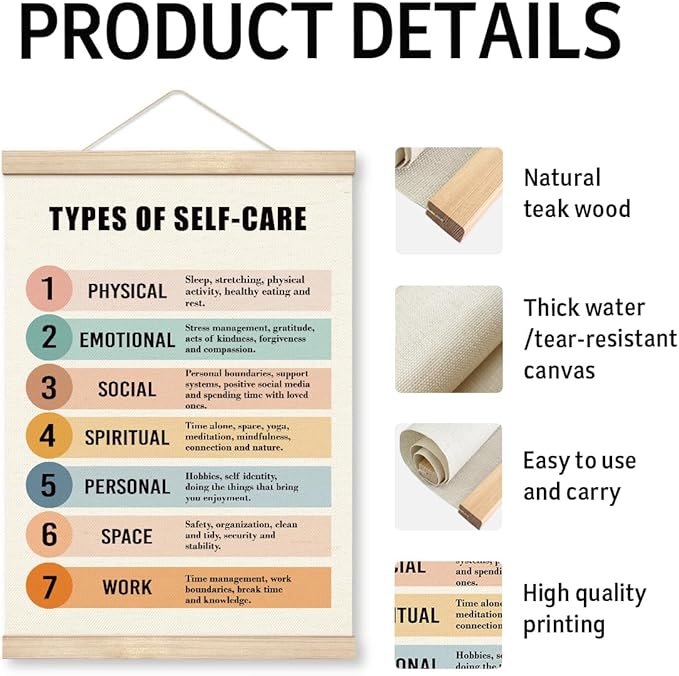 Yxadu Canvas Poster with Wooden Hanger, Anxiety Relief Mental Health Art, Home Office Bedroom Decor, Therapist Office Decor, Self-Care Poster