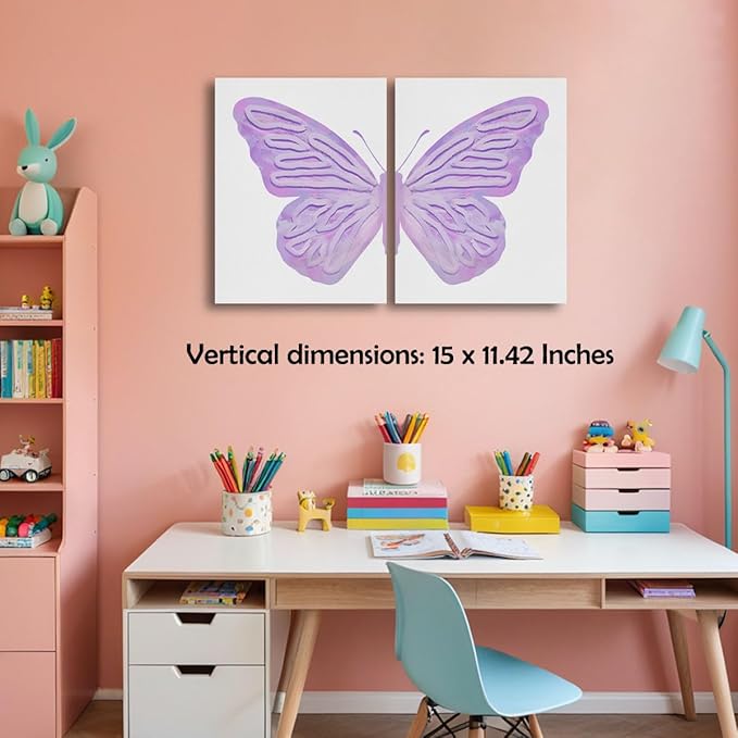2PCs Purple Butterfly Decorations Aesthetic Canvas Wall Art Classroom Decor Preppy Framed Art Paintings Wall Decor Preppy Stuff Artwork College Apartment Room Home Decor Decorations Posters Prints