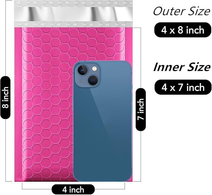 - 【Bubble Mailers Size】Exterior Size: 4 x 8 inch. Usable size: 4 x 7 inch.