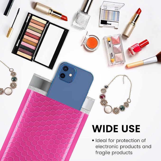 Fuxury Bubble Mailers 4x8" 800 Pack Pink Bubble Mailers Usable Size 4x7” Small Padded Envelopes Waterproof Mailing Envelopes Bubble Padded