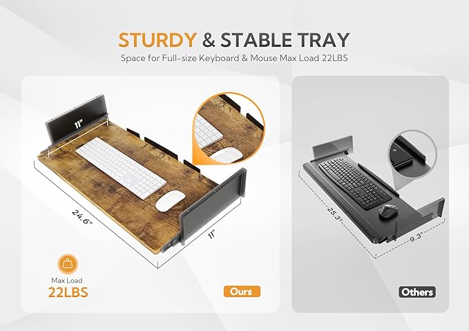 - Spacious Keyboard Tray: Our expansive 26.8" x 9.8" keyboard tray fits a full-size keyboard and mouse with extra room for additional comfort. It helps keep your wrists in a natural position, reducing strain for better long-term comfort.