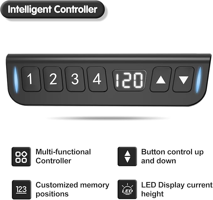 - Ergonomic Range: Stepless adjustable height range to accommodate most users from 29.7" to 48.8". Four memory preset positions allow for one-touch adjustment to your preferred height